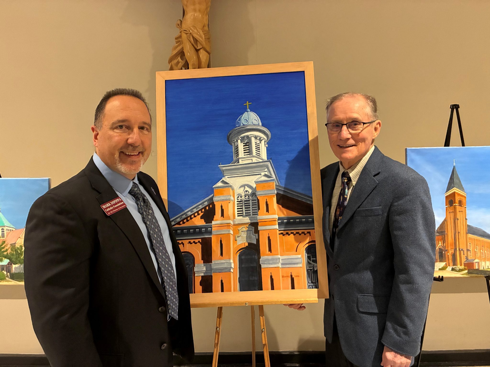 A preview of several paintings was displayed earlier this year during a Bishop’s reception, drawing admiration from parishioners and benefactors alike.