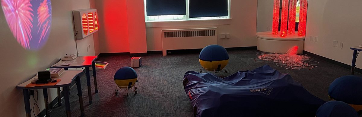 Installed in a quiet, second-floor area of the school, the new sensory room is filled with specialized visual, auditory, and tactile equipment designed to help students self-regulate, manage anxiety, and build coping skills.