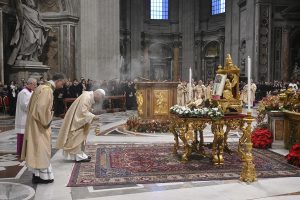 “Let us all rejoice in the Lord, for our Savior has been born in the world. Today, true peace has come down to us from heaven” (Entrance Antiphon, Christmas Mass during the Night). Thus sings the liturgy on Christmas night, and the announcement of Bethlehem resounds in the Church: the Child born of the Virgin Mary is Christ the Lord, sent by the Father to save us from sin and death. Indeed, he is our peace; he has conquered hatred and enmity through God’s merciful love. For this reason, “the Lord’s birth is the birth of peace” (Saint Leo the Great, Sermon 26).
