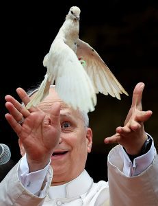 Pope Leo XIV releases a dove after he attended a Meeting for Peace at St. Joseph’s Cathedral in Bamenda, Cameroon, April 16, 2026. (OSV News photo/Guglielmo Mangiapane, Reuters)