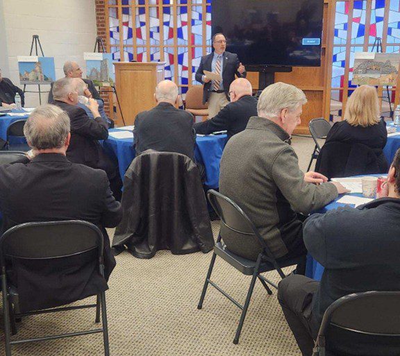 Rev. Connell A. McHugh was born in Hazleton, the son of Connell and Katherine (Faeley) McHugh. He attended the former St. Gabriel’s School for both his elementary and high school education, graduating in 1964. He began his preparation for the priesthood at St. Charles Borromeo College in Catonsville, Maryland, which was staffed by the Sulpician Order. He continued his studies at St. Pius X in Dalton, the former Diocesan seminary, in the fall of 1966. It was at St. Pius X that he developed a love of biblical studies, inspired by Fr. Robert Barone, a native of Hazleton and a former student of Fr. Raymond Brown whom Father McHugh regarded as the greatest biblical scholar in the United States of any Christian denomination. Fr. McHugh and classmate Fr. William Karle were largely responsible along with Fr. Devlin of Scranton University to have seminarians receive degrees from Scranton University. Fr. McHugh graduated with a B.A. in philosophy from Scranton University in 1969.