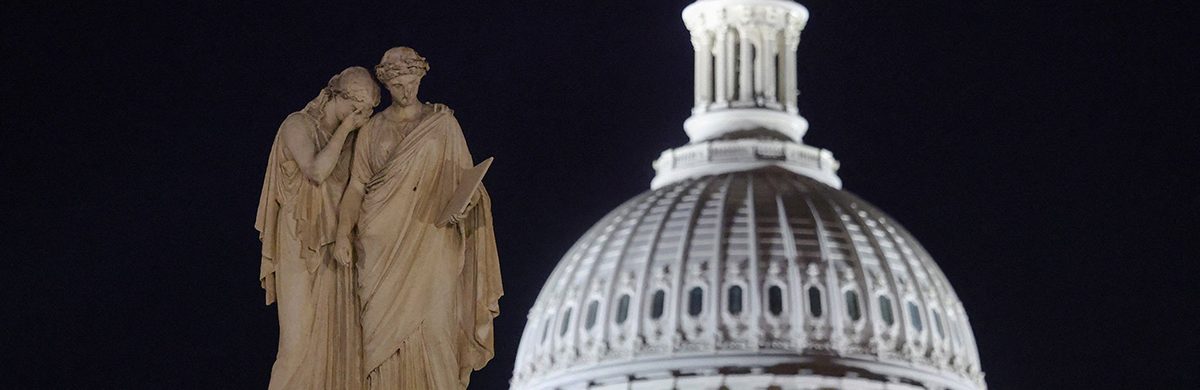 The Peace Monument, named Grief and History, is pictured at the U.S. Capitol in the hours before a partial government shutdown in Washington, Sept. 30, 2025. (OSV News photo/Jonathan Ernst, Reuters)