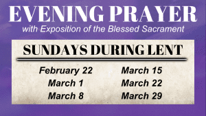 Every Sunday during Lent, the Cathedral will be hosting Adoration and Evening Prayer following the 5 p.m. Mass.