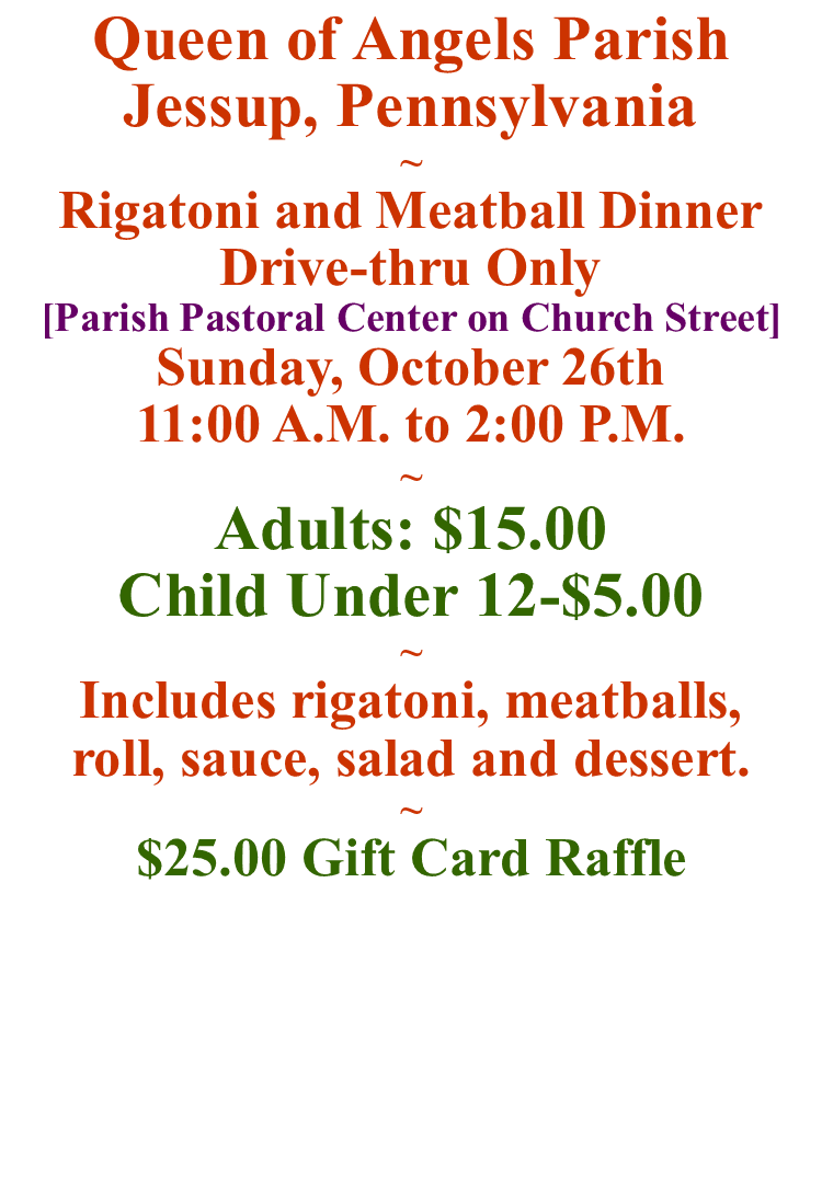 26oct11:00 AM2:00 PMRigatoni and Meatball Dinner Drive-Thru