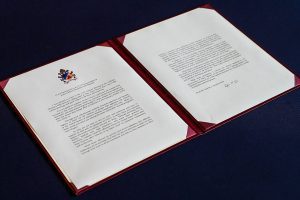 A letter Pope Leo XIV sent to Catholic Charities USA is seen Oct. 8, 2025, in San Juan, Puerto Rico. The pope wrote to the organization commending its work as it convened its 115th annual gathering Oct. 6-9 in San Juan. (OSV News photo/Elias Kontogiannis, courtesy Catholic Charities USA)