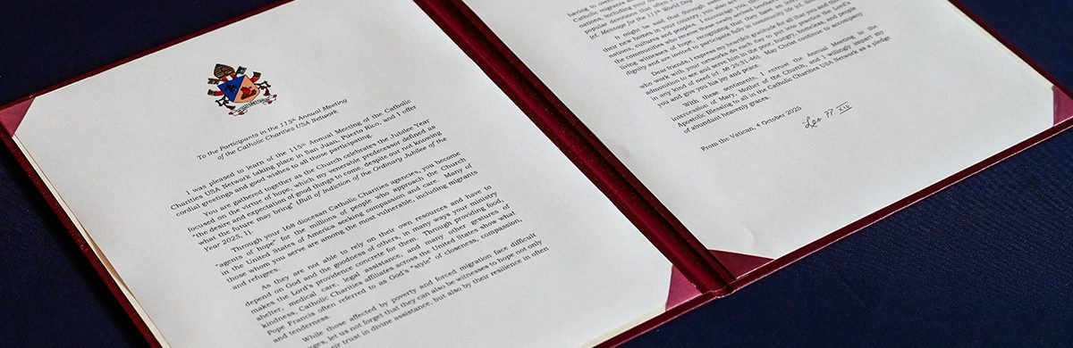 Kerry Alys Robinson, president and CEO of CCUSA, said in a statement, “We are profoundly grateful to Pope Leo XIV for the Apostolic Blessing he has imparted upon the Catholic Charities network, and we are inspired and invigorated by the solidarity and encouragement he offered in his letter.”
