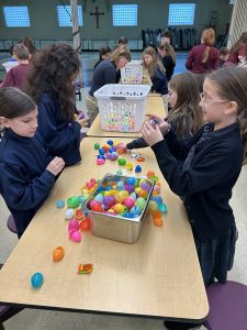 “Our students took on a bigger task than expected putting together Easter eggs for Saint Boniface and helped in organizing areas of the church campus,” Arianna Scutt, fourth grade teacher, said.