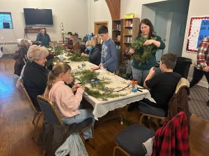 WEST WYOMING – The scent of fresh evergreens filled the hall at Saint Monica Parish recently as parents, kids, and visitors all worked to build an Advent wreath for their family.